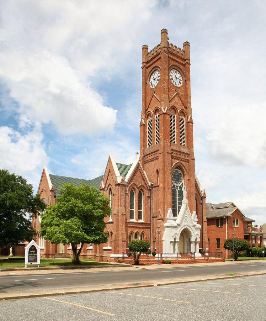 The soaring Neo-Gothic style brick clock tower of St. Francis Xavier Cathedral, with its pealing bells, has long been one of the iconic landmarks of downtown Alexandria. At the time of its completion in 1907 the 141 foot tower was the tallest man-made structure in Central Louisiana. Its completion marked the culmination of a hope long cherished by a faith community ravaged by war, famine, sickness and flood. Like so many historic structures St. Francis Xavier Cathedral speaks not only of engineering, art and science but also of faith, hope and love.