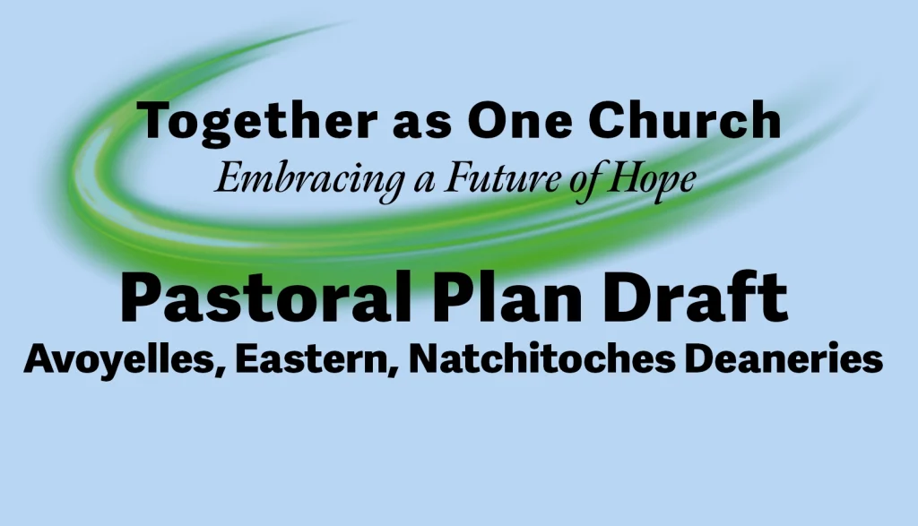 This document presents the draft pastoral plan for the Avoyelles, Eastern, and Natchitoches Deaneries of the Diocese of Alexandria.